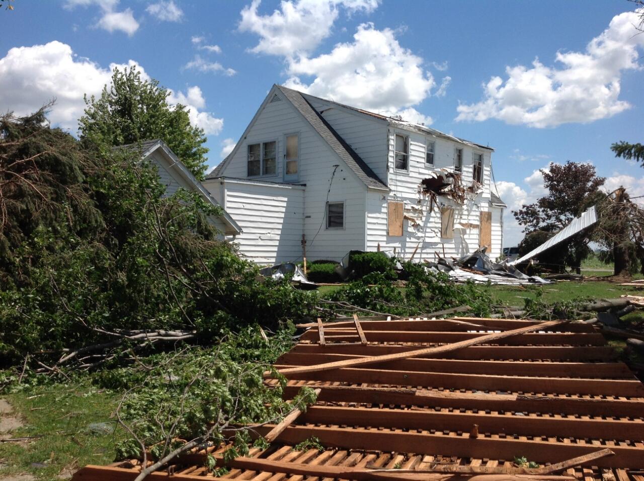 | A home damaged by a June 13, 2013 EF-1 tornado in Henry County, Ohio (NWS photo) |