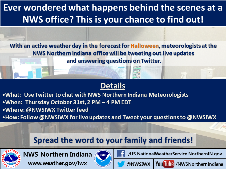 You can also learn more about today’s weather event by watching and/or participating in a Twitter “tweet-up” that the northern Indiana NWS office will conduct between 2 p.m. and 4 p.m. EDT. Read more about the tweet-up.